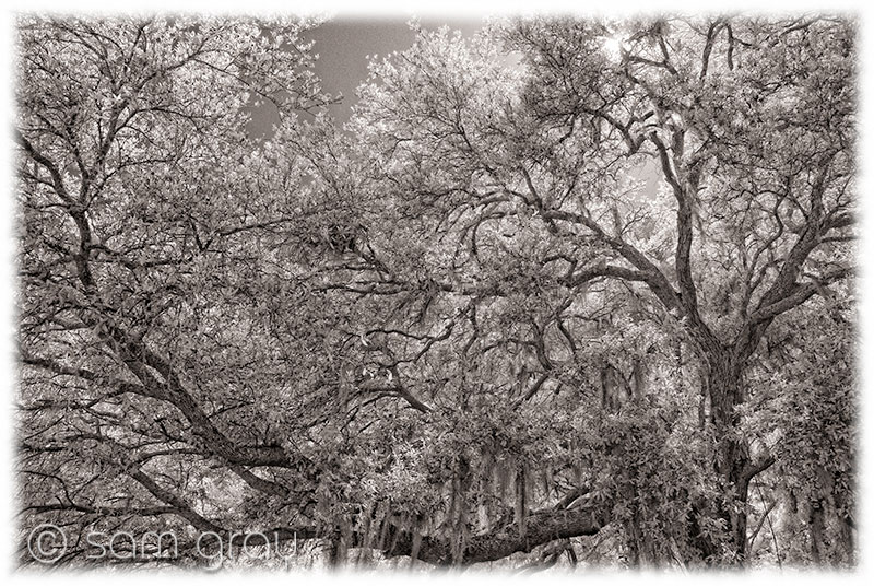 Pretty much used my IR converted D200 today…the light was pretty hard and I love the black & white tonal range you get in IR. The trees are pretty amazing here so I took advantage of the local subject matter…this is a live oak on the bike path.